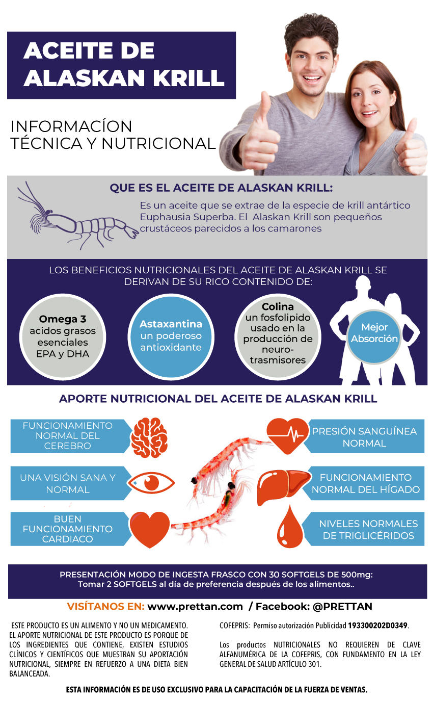 El Aceite Alaskan Krill es un complemento alimenticio que contiene el aceite, extraído en frío, del krill (Euphausia superba),