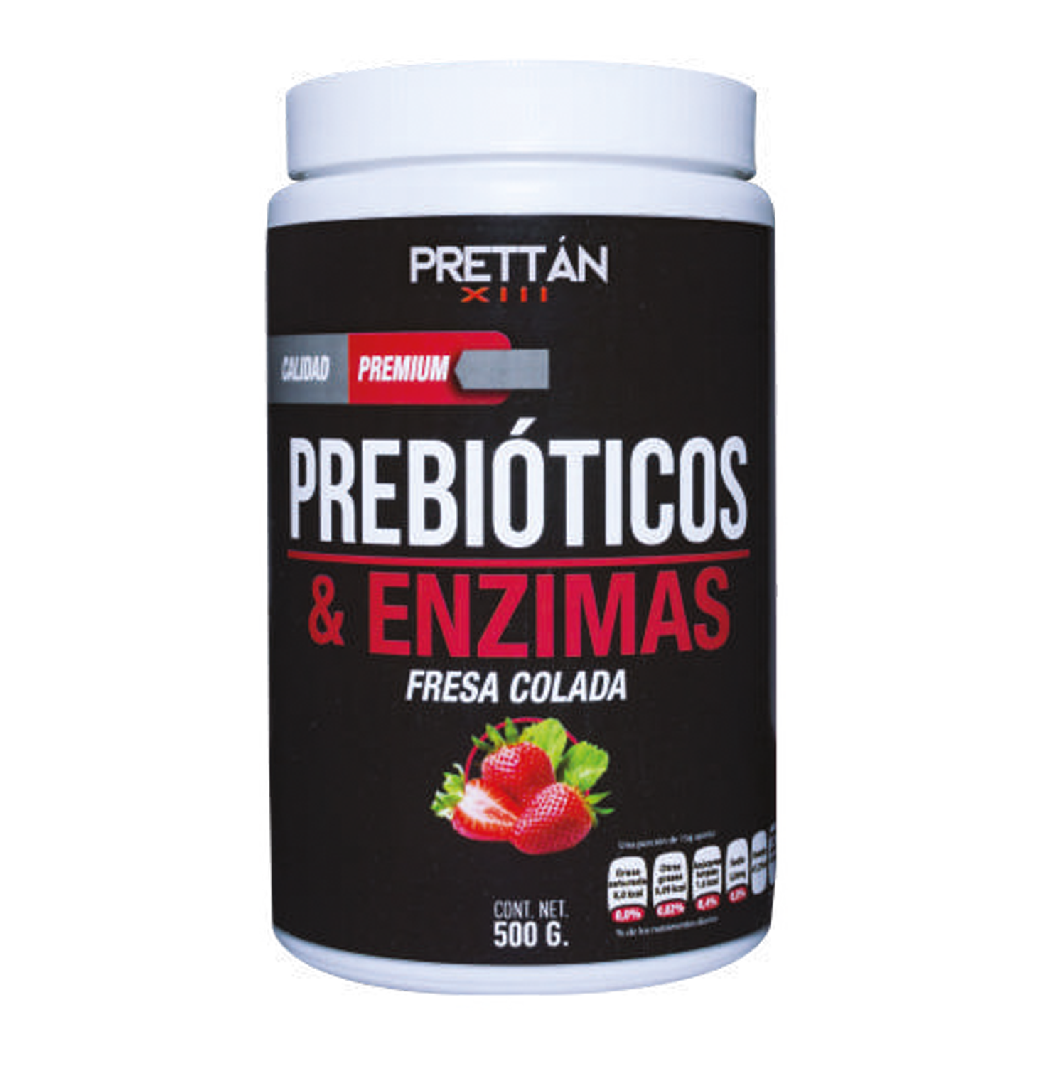 Inulina de Agave (Prebiótico), Fructo Oligo Sacáridos (Pre Biótico), Papaína, Linaza, Bromelina, Actidina, Lipasa, Polifenol Oxidasa, Sabor natural Fresa Colada.